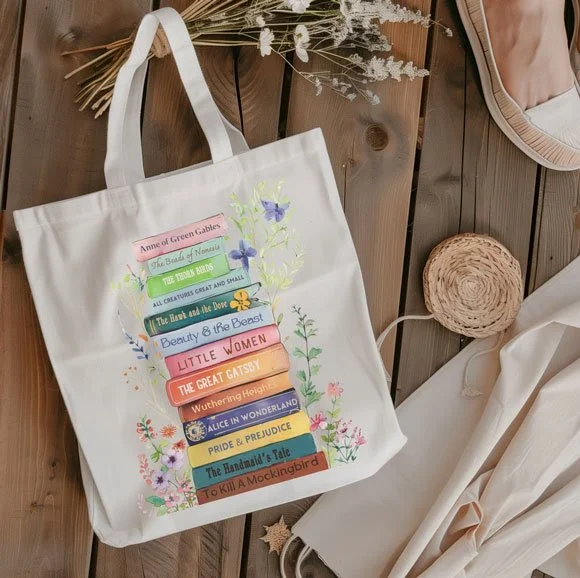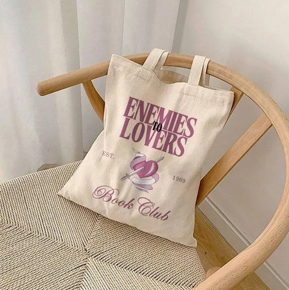 These bookish trope tote bags are another great choice. Personally, I’m a fan of the enemies-to-lovers design.